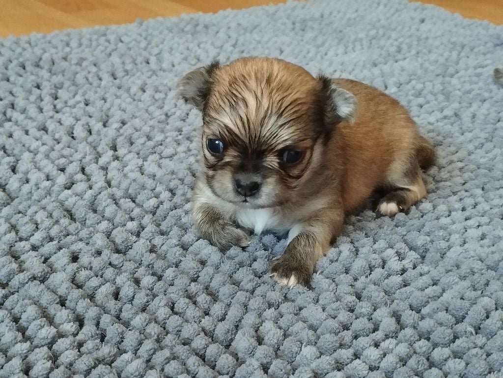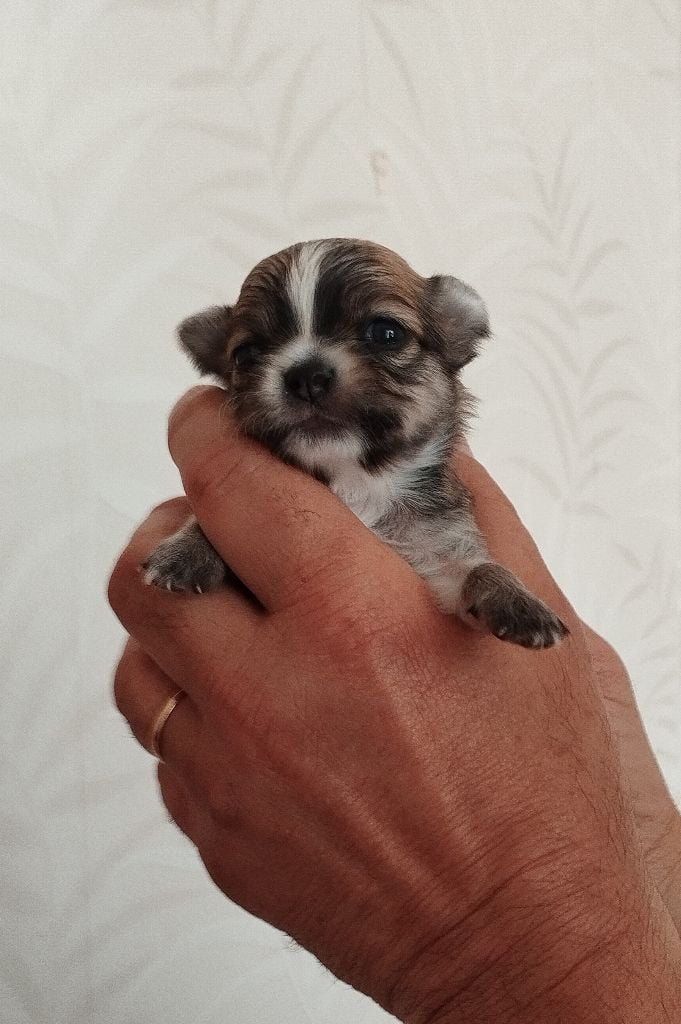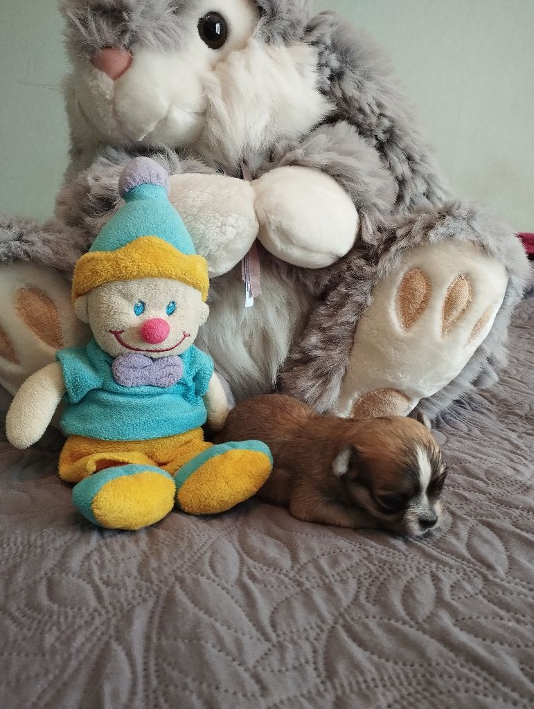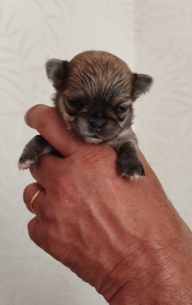 Superbe petit mâle qui a ouvert les yeux le 9 juin dernier. Il commence à marcher, mais perd encore l'équilibre quelques fois. Le p'tit loulou affectionne déjà les caresses.